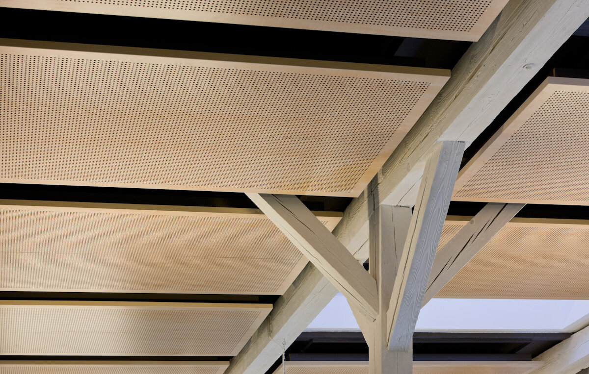 Deckensegel aus Holzwerkstoffen verfügen über eine geschlitzte oder gelochte Oberfläche, die auch integrierte Beleuchtungen aufnehmen können. Geliefert werden vielseitige Varianten zum Beispiel in Lack, Echtholzfurnier oder in Schichtstoff Melamin. Die Holzsegel werden für Sie individuell auf Maß gefertigt.
