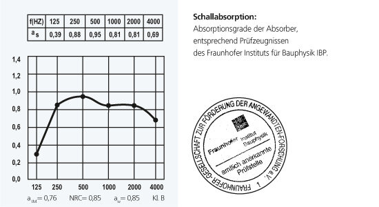 Diese Absorptionswerte beruhen auf eine Schlitzung von ST 3-16 bei 200mm Abhängung. Weitere Ausführungen sind möglich, dazugehörige Prüfzeugnisse liegen vor.