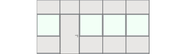 • verzinktes Stahlskelett mit 40 mm Mineralwollausfachung, beidseitig mit 13 mm melaminharzbeschichteter oder echtholzfurnierter Qualitäts-Spanplatte beplankt.