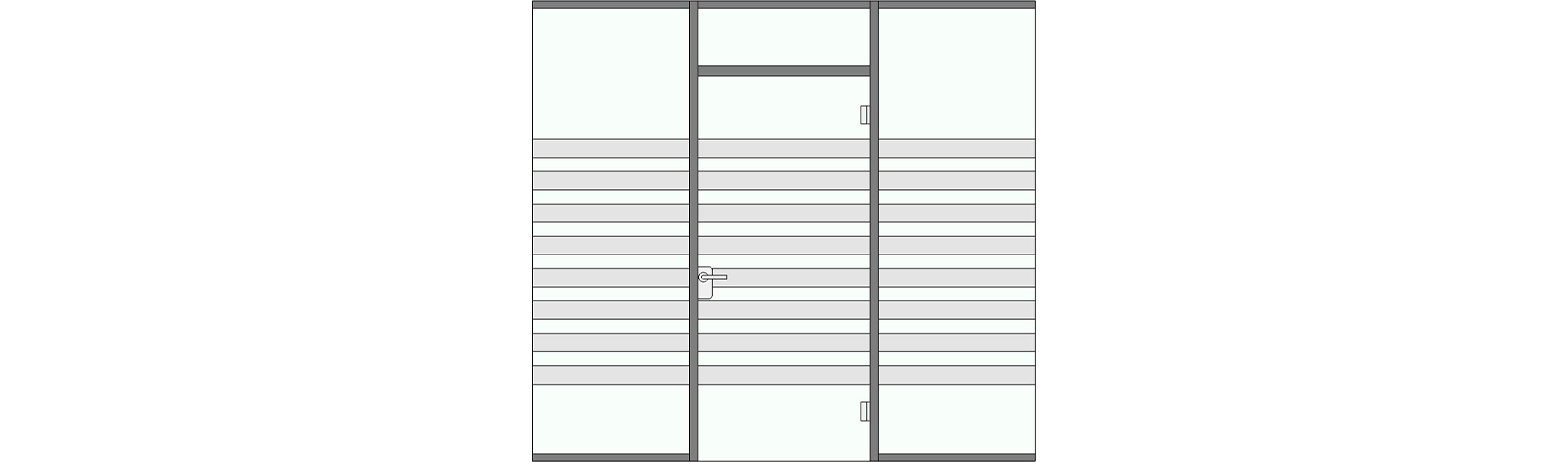 • Türen: Pulverbeschichtete Stahlzarge mit oder ohne Oberlicht, Schalterpaneel möglich, Glastür oder Volltür